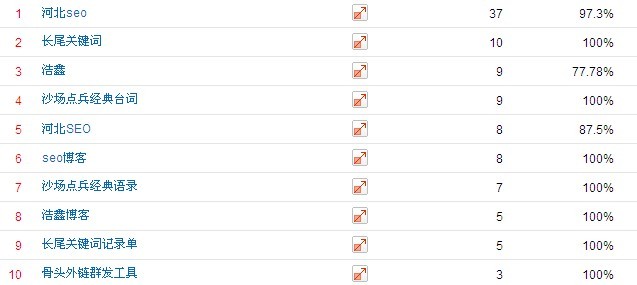 上圖是百度統(tǒng)計(jì)5.25號(hào)所統(tǒng)計(jì)的數(shù)據(jù)。其實(shí)“河北SEO”這個(gè)詞還能給浩鑫這個(gè)博客帶來(lái)這么多流量是我沒(méi)想到的,要知道,其實(shí)再去搜索“河北SEO”,浩鑫這個(gè)博客已經(jīng)迭出了三頁(yè)之外,原則上是沒(méi)什么流量的,我想這些流量應(yīng)該都是浩鑫的朋友,或者說(shuō)之前經(jīng)常關(guān)注浩鑫博客的SEO愛(ài)好者們。
