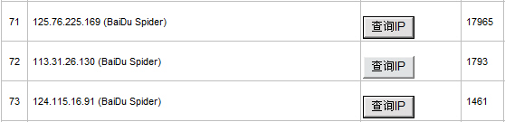 每周三我都要對該電子商務(wù)網(wǎng)站進行周日志的分析,以便來統(tǒng)計上一周的優(yōu)化效果,在本周進行對網(wǎng)站日志進行分析查看時,我發(fā)現(xiàn)了幾個不屬于認(rèn)識中的“蜘蛛IP”,如圖: