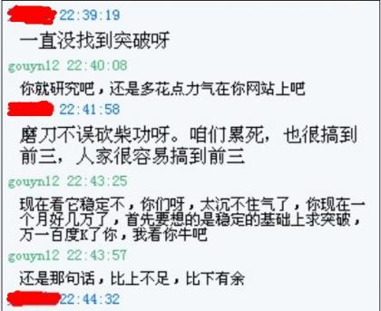 然后我提醒這位朋友,做SEO與網(wǎng)站運營的確要關注競爭對手,把握整個行業(yè)發(fā)展動態(tài),但更應該以我為主,因為別人行不意味我可以。不能聽風就是雨,最后亂了自己方寸——“六根不定,輸個干干凈凈”。我說,誰都希望快速做強做大,但憑心而論,你網(wǎng)站的發(fā)展速度已經(jīng)夠快了——從去年7月我百度知道上認識你起,當時你網(wǎng)站才幾十IP,現(xiàn)在連續(xù)上了幾個大項目,而且都活得不錯,效益也很好,可以滿足了。