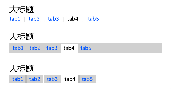 上圖都是選中tab4的效果,但結構方式卻不一樣。雖然這個例子很簡單,但我們在實際操作的時候,往往會比這復雜很多,比如: