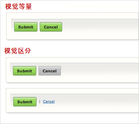 有人說有時候次要動作也是合理的(【另存為】、【導(dǎo)出】等)。在這種情況下,我的經(jīng)驗是把主次要按鈕從視覺上區(qū)分開,這樣用戶就不至于混淆主要目的:完成表單。
