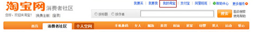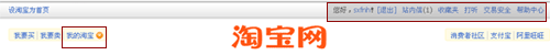 發(fā)現(xiàn)這么個(gè)情況,“我的淘寶”與用戶操作區(qū)(灰色區(qū)域)分別列與頂部兩側(cè),下圖: