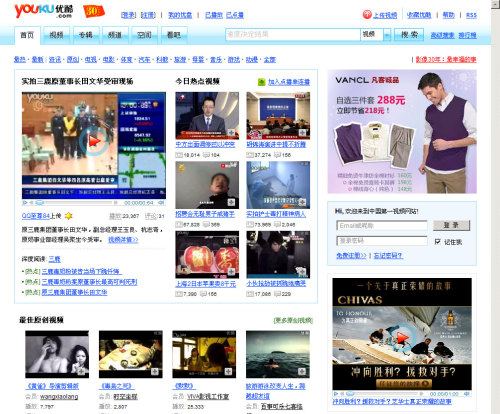 所以我們要以一個視頻門戶用戶的角度來體驗優(yōu)酷,優(yōu)酷首頁整體比較淡雅,欄目分類、搜索區(qū)域、廣告區(qū)域等結構布局比較清晰,但個人覺得第一屏圖片過多,會有點突不出重點,這也是門戶網站內容過多所導致的一個問題,有時會忽略掉右側的很淡的登錄區(qū)域,建議中間6個小視頻可以改成圖文混和的方式會使頁面有個過渡,這樣感覺左右平衡些。