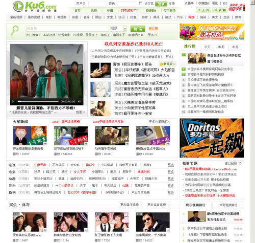 酷6首頁整個給人很清新的感覺,在色彩上處理的很好,第一屏內容相比優(yōu)酷就比較平衡,圖文混搭的很合理,其他的布局和優(yōu)酷類似,基本格局還是很清晰,由于酷6在顏色上處理比較好,所以整體感會比優(yōu)酷稍好;但我發(fā)現(xiàn)頁面頂部的導航欄非常擁擠,上面分了6個大分類,下面有分類10幾個小類,甚至酷6還做起代理網頁游戲的業(yè)務,看來盈利的壓力確實很大啊,不得不開展比較賺錢的游戲業(yè)務,最令我受不了的是最右側竟然還擠進一個可口可樂廣告,以至于登錄框不得不和導航欄靠得很近,我差點沒找到哪里登錄。