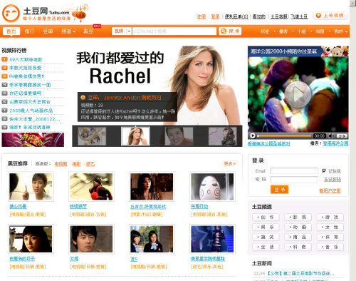 土豆的首頁設計和之前的2個網站就有很大不同,非常簡潔,舍棄很多不重要的內容,這也是土豆一貫的風格,色彩看起來也非常舒服,頁面上的內容之間并不是太擁擠,用戶無需太多思考就可以快速獲取頁面信息,導航欄也非常簡潔清晰。個人覺得改進的地方是中間的翻頁推薦,土豆為了這個騰出來大塊區(qū)域,但選用的圖片完全沒有設計感,只是在上面寫了一些文字,在視覺上是個美中不足,如能像淘寶翻頁推薦那樣都是精心設計的圖片應該能給首頁加分不少。