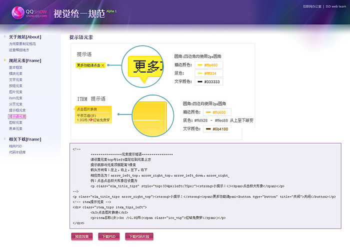QQ空間完整的portal線上規(guī)范、空間模板規(guī)范,以及細(xì)節(jié)到空間loading、掛件制作的規(guī)范;