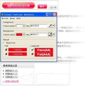 截圖中使用對(duì)比度檢查器,基于W3C的WCAG Guideline 1.4.4和1.4.2中有相應(yīng)的規(guī)定,工具的下載和具體說明可見油茶會(huì)的這篇。
