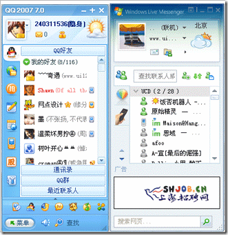 QQ的視覺(jué)定位是以青少年為主的,所以它的視覺(jué)設(shè)計(jì)才采用了比較明亮活潑的色彩。而MSN的視覺(jué)定位是以辦公室工作人員,所以它的視覺(jué)使用比較穩(wěn)定和平靜的色彩。