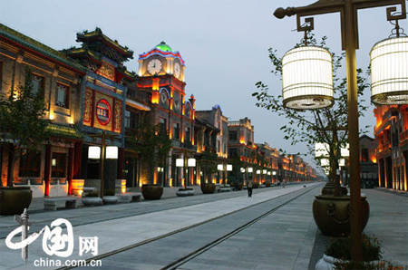 現(xiàn)代人新修繕的前門大街。這條大街的北段,基本上是依照原有建筑翻新的,可以理解為新古典主義吧。南段則是新建的房子,由于沒有明確的參照,設(shè)計師可以自由發(fā)揮,這給飽學(xué)了現(xiàn)代主義理念的設(shè)計師提供了機會,設(shè)計了很據(jù)現(xiàn)代主義的房子—無裝飾的,平頂,方方正正的(也許可以節(jié)約建筑成本,至少在現(xiàn)代主義興起的階段是這樣考慮的)。作為一條傳統(tǒng)商業(yè)街上的建筑,使用了與周圍大雜院一致的灰色,門窗上適當(dāng)使用了一些傳統(tǒng)元素。大概應(yīng)該算是后現(xiàn)代主義吧。