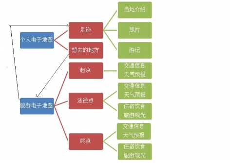 這張圖的思路是整合信息到地圖網站上,把旅游信息搜索與個人地圖結合起來,作為地圖網站的一項重要功能。