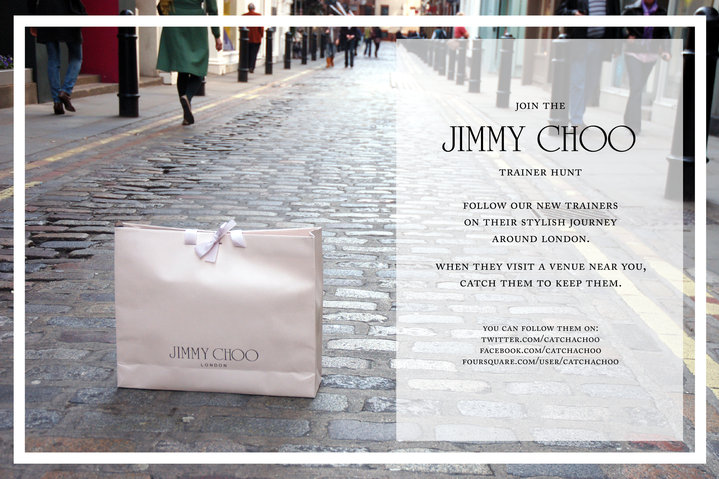 Jimmy Choo已經(jīng)成為社交媒體中一個(gè)引領(lǐng)者,這很大程度上得益于它在2010年春季的活動(dòng) Catch-a-Choo Foursquare (美國很受歡迎的簽到社交媒體),活動(dòng)要求女性圍著倫敦跑,作為獎(jiǎng)勵(lì),她有機(jī)會獲得一雙新上市的運(yùn)動(dòng)鞋。Jimmy Choo使用Foursquare在不同的時(shí)尚場所來簽到,簽到是通過Facebook和Twitter發(fā)布,第一個(gè)到達(dá)各個(gè)簽到點(diǎn)的人會獎(jiǎng)勵(lì)一雙運(yùn)動(dòng)鞋。